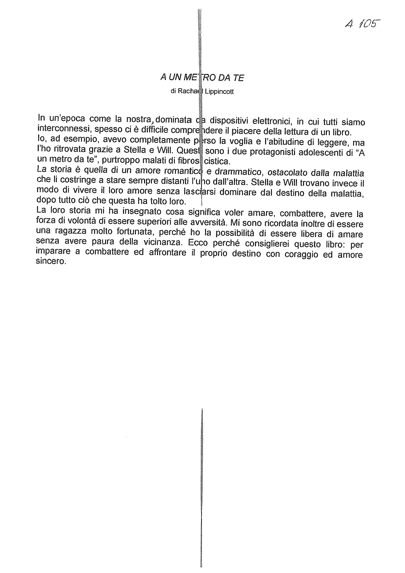 ”a un metro da te” rachel lippincott